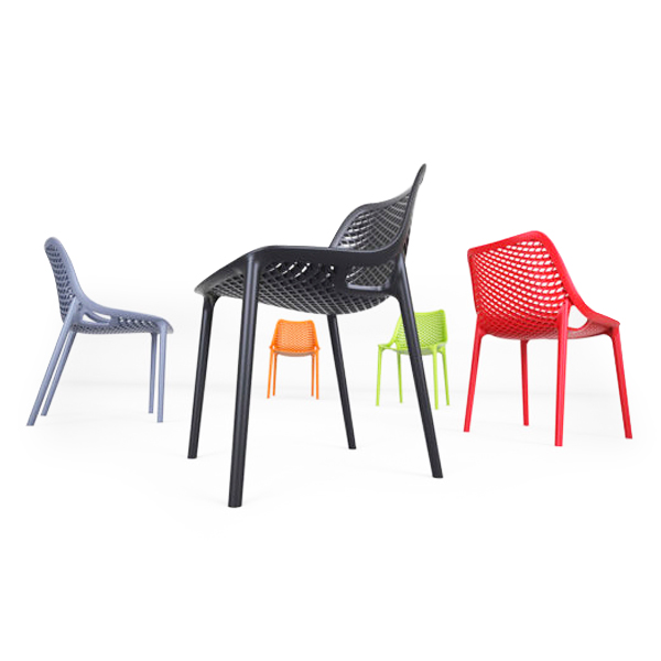 Notes: Indoor or outdoor use with nylon foot glides, stackable, scratch and UV resistant