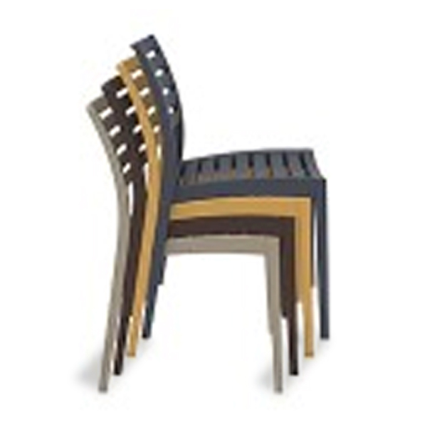 Notes: Indoor or outdoor use with nylon foot glides, stackable, scratch and UV resistant