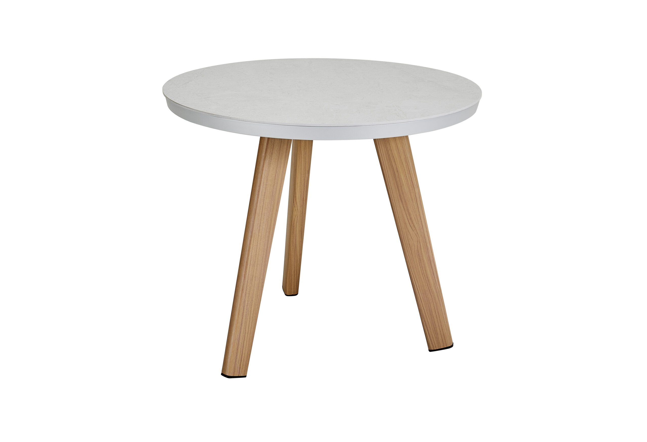 Frame: Ceramic top with powder coated aluminum wood grain or solid colored legs in teak color and aluminum rim