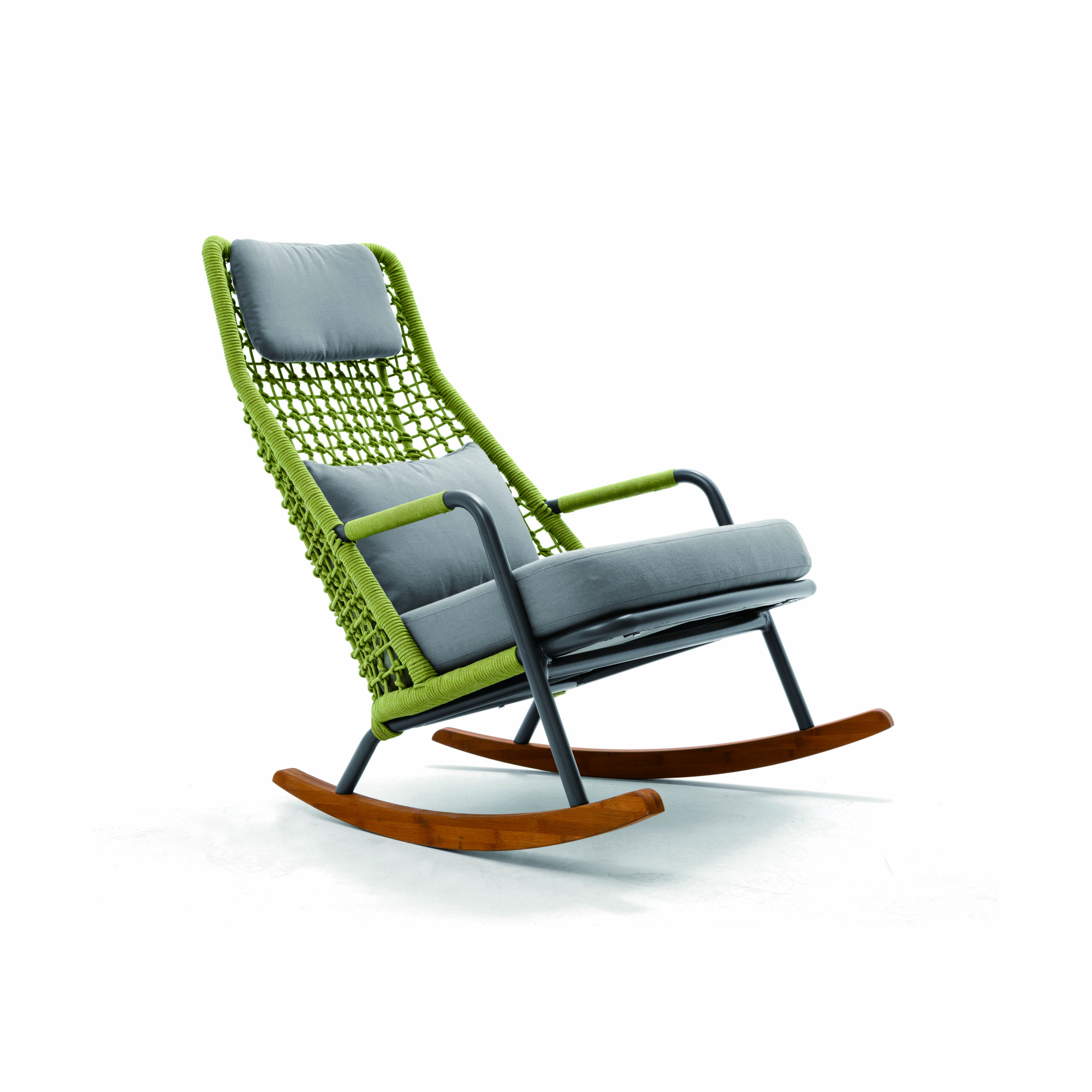 Frame: Powder coated aluminum with rope and teak color wood grain PC ALU rocker rails