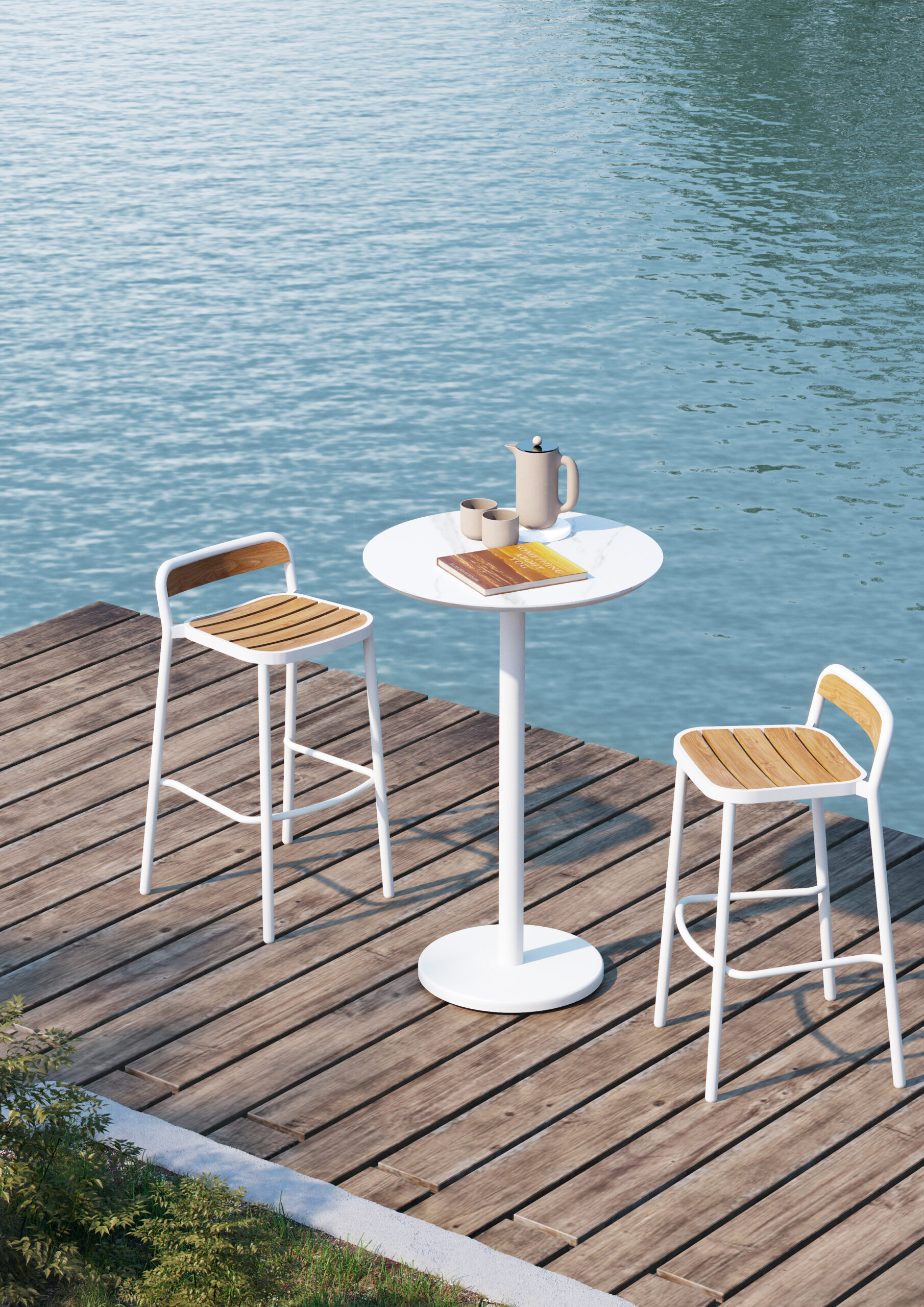 Frame Finish: Powder coated aluminum with teak or faux teak slats back and seat