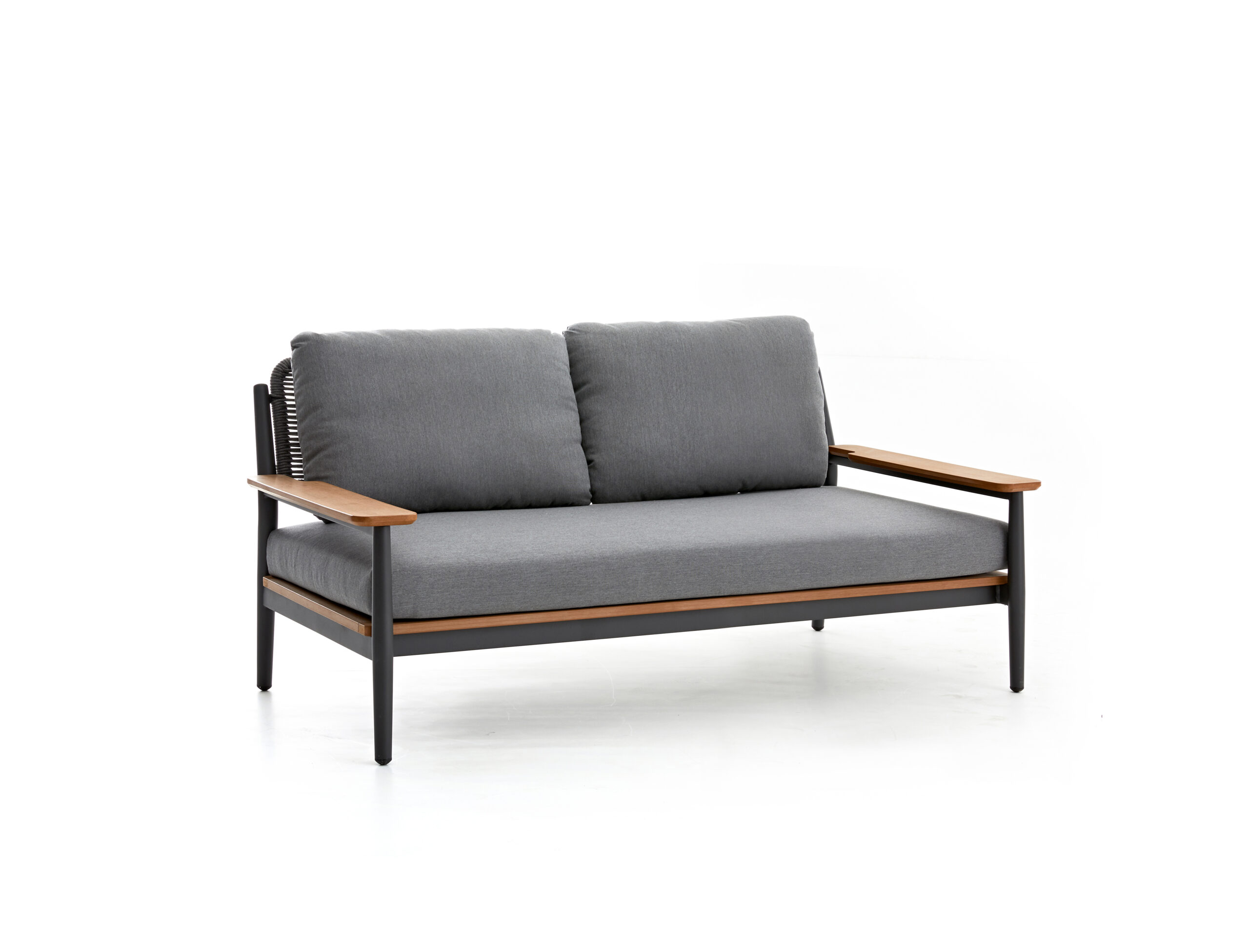 Frame: Powder coated aluminum with rope back and faux teak base & arm rests