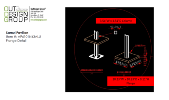 Notes: Indoor/outdoor use, with nylon foot glides, Flanges without mounting hardware are available to attach/secure 4 columns to floor (included in price) , Client responsible for securing the pavilion to the ground