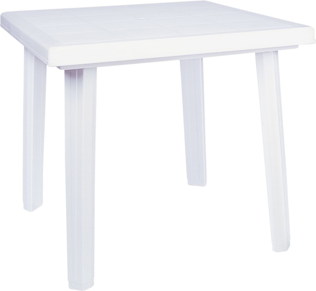 Notes: Indoor/outdoor use, nylon foot glides, stackable, scratch/UV resistant, umbrella hole
