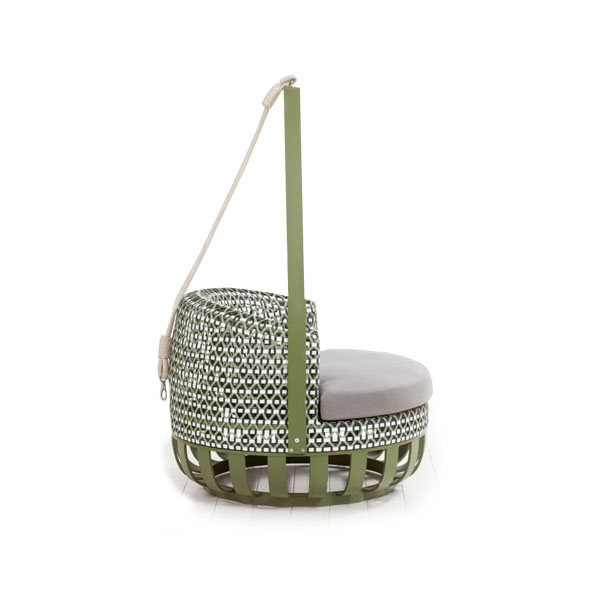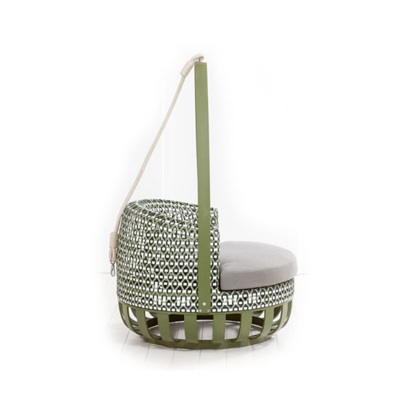 Notes: Indoor or outdoor use, with nylon foot glides, purchaser needs to ensure that there is appropriate framing in place to support this chair , Accent pillows and rope not included in price